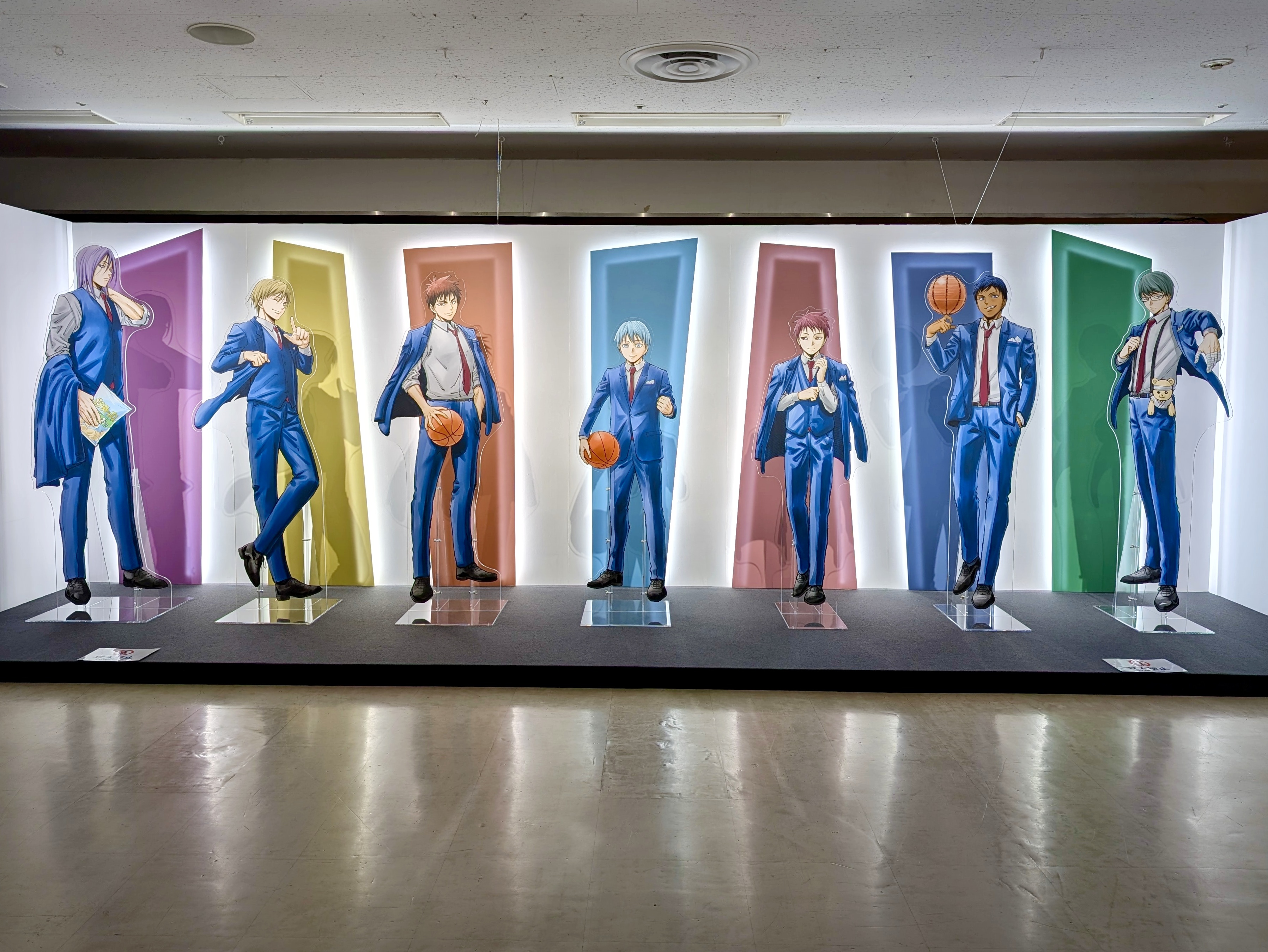 終盤では本展のために描きおろされた黒子と火神、そして「キセキの世代」たちのイラストを使った等身大アクリルパネルが展示されていました。